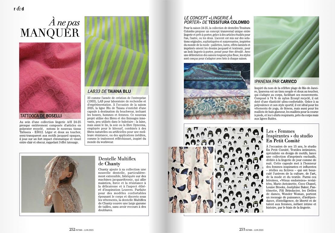 Dans le numéro de juillet 2023, on y parle d’En Petit Comité et de cette capsule « femmes inspirantes » que je présenterai en avant-première au salon Première Vision Designs. Et ça me met en joie ! Pourquoi ?